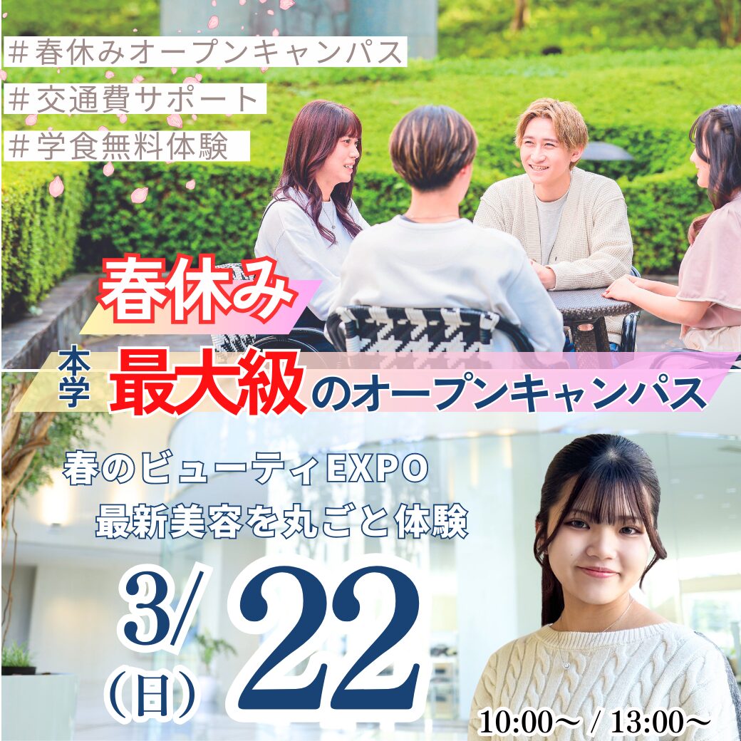 3/22(日)春休み本学最大級のオープンキャンパス!春のビューティEXPO~最新美容を丸ごと体験〜