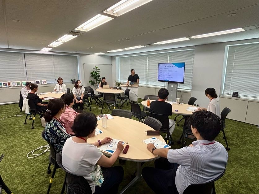 今回の訪問では、健康経営の推進に関して商務・サービスグループ ヘルスケア産業課の忠内様と岩田様から前半にお話しいただき、後半にはお2人を含めた参加者の皆様とグループディスカッションを行いました。