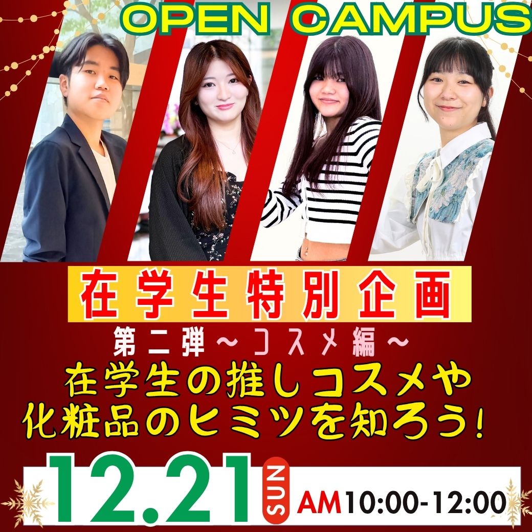 12/21(日)≪Xmasスペシャルイベント≫在学生企画第2弾!〜コスメ編〜在学生の推しコスメや化粧品のヒミツを知ろう!