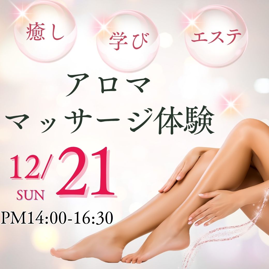 12/21(日)≪エステ体験≫癒しと学びの特別な日~アロママッサージ体験で美容の大学の学びを知ろう~