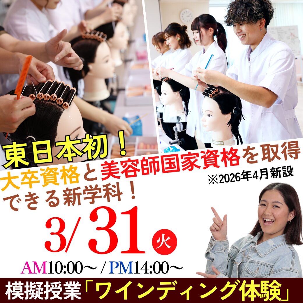 ≪美容師国家試験ワインディング体験≫3/31(火)東日本初!大卒資格と美容師国家資格のW取得を目指す新学科の模擬授業を体験しよう!