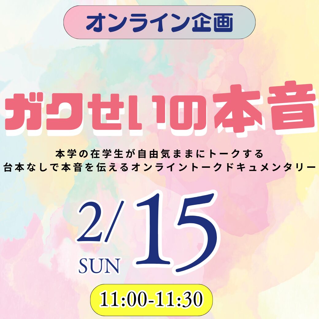 【オンライン企画】2/15(日)ガクせいの本音 ~在学生が自由気ままに台本なしで本音を伝えるオンライントークイベント~