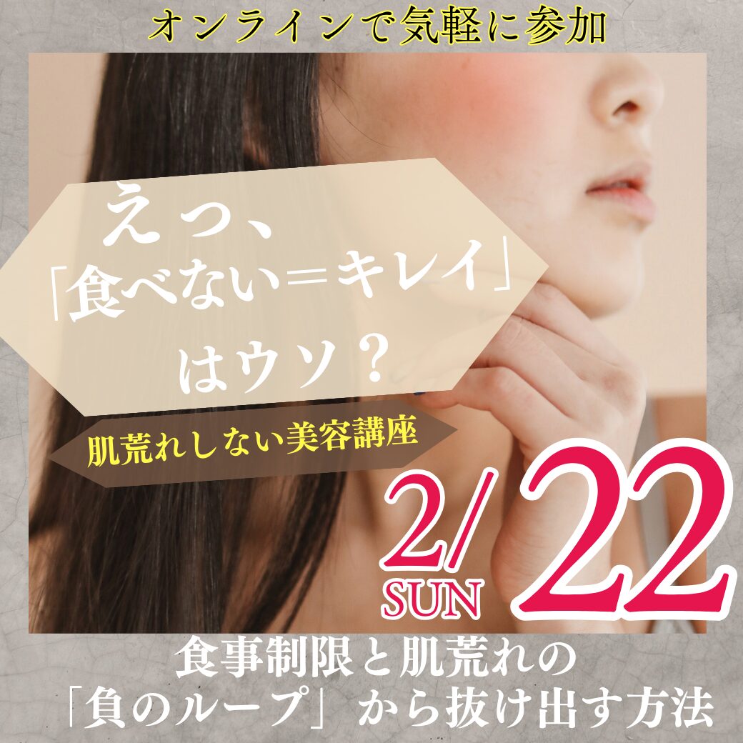 【オンライン美容講座】2/22(日)「食べない=キレイ」はウソ?肌荒れしない美容講座 〜食事制限と肌荒れの「負のループ」から抜け出す方法〜