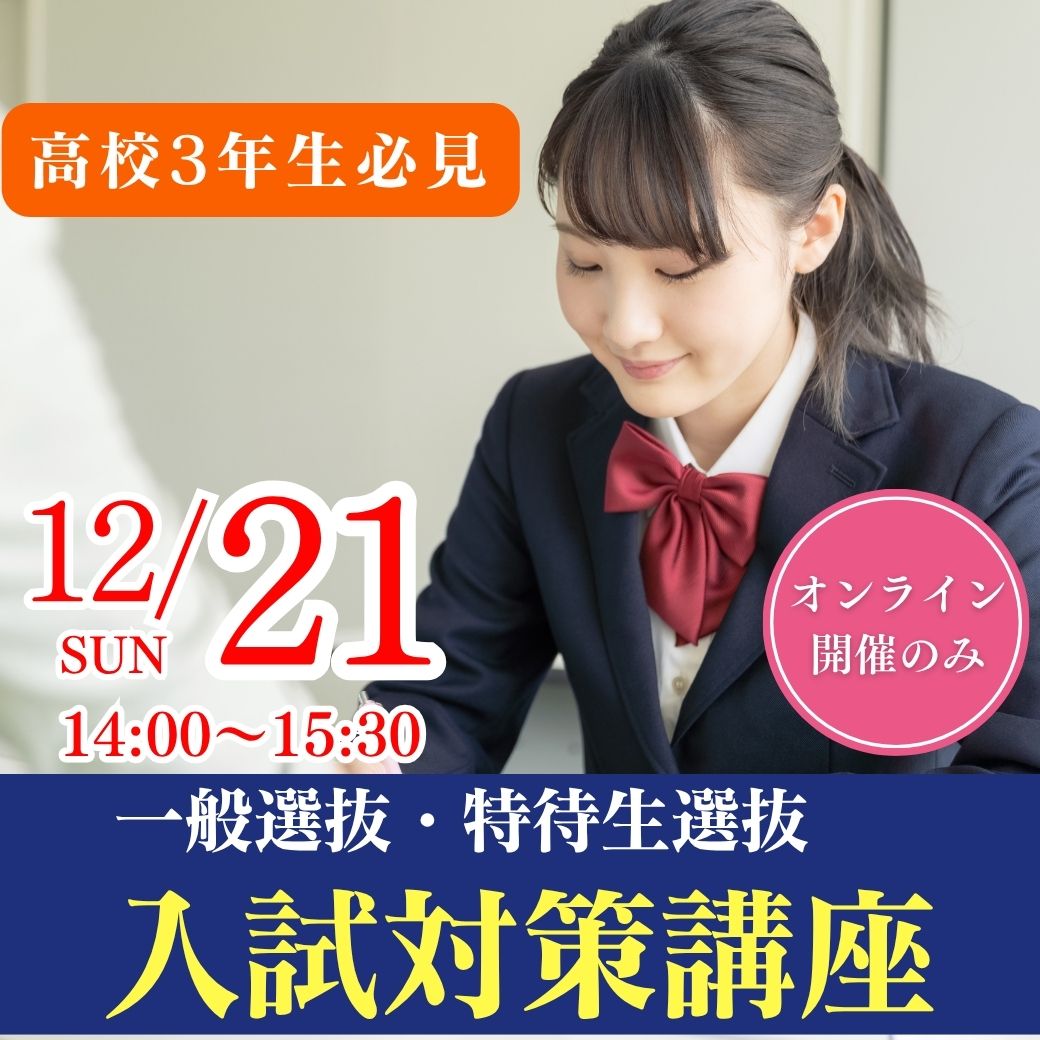 12/21(日) 高校3年生必見≪オンライン開催≫一般選抜・特待生選抜対策講座