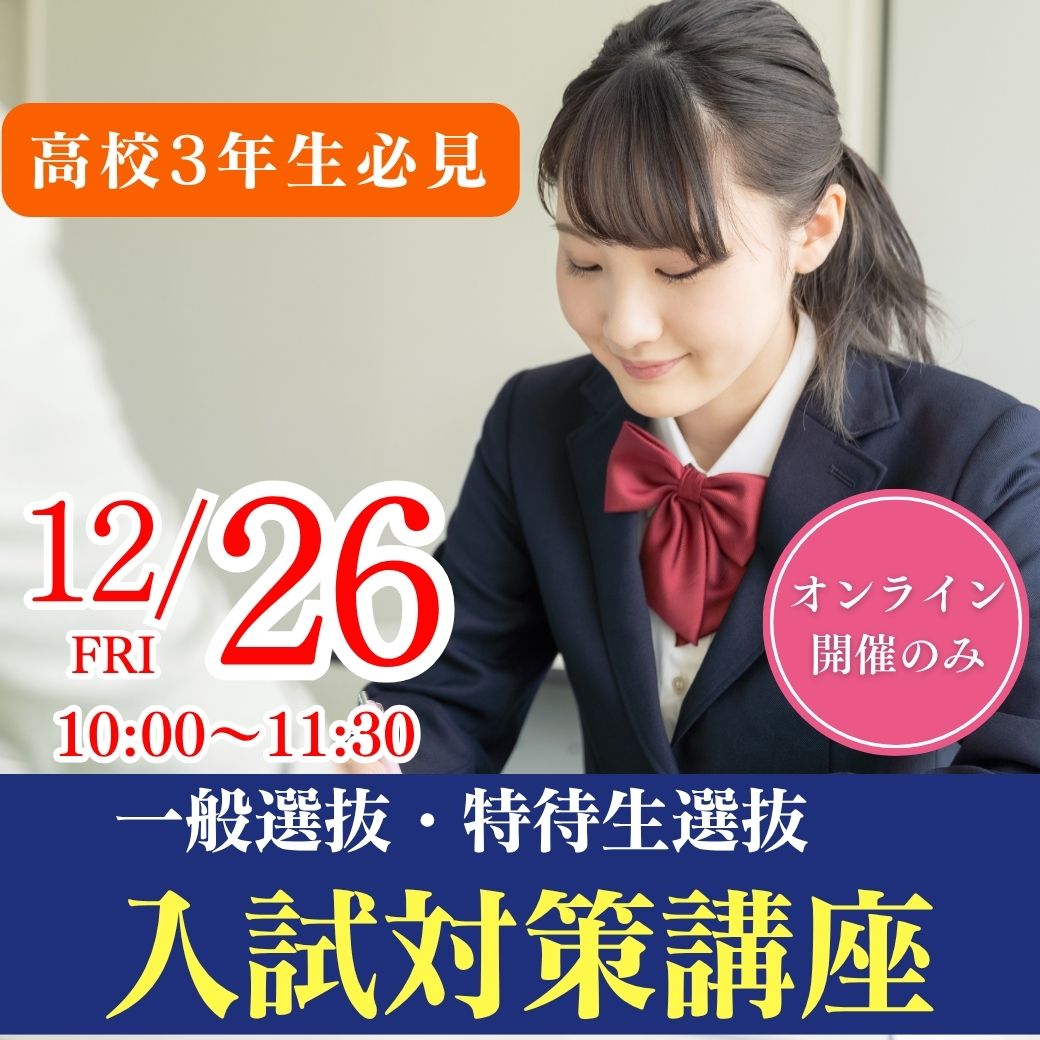 12/26(金) 高校3年生必見≪オンライン開催≫一般選抜・特待生選抜対策講座