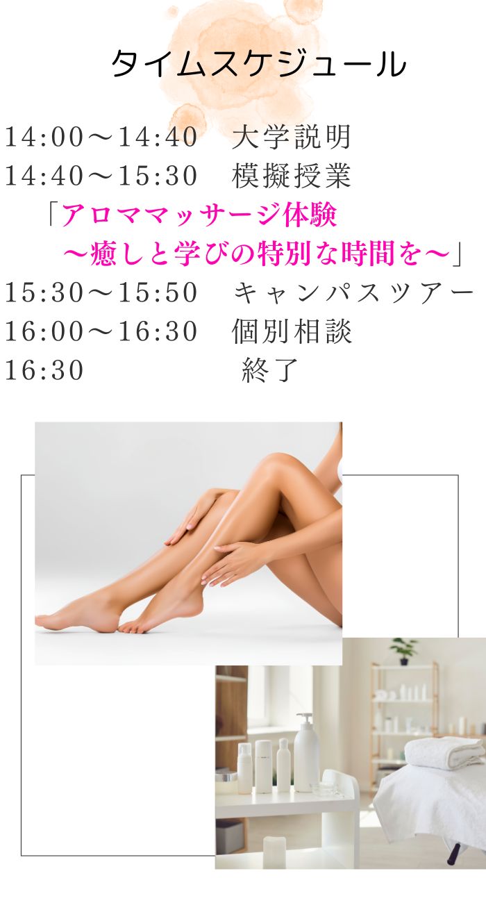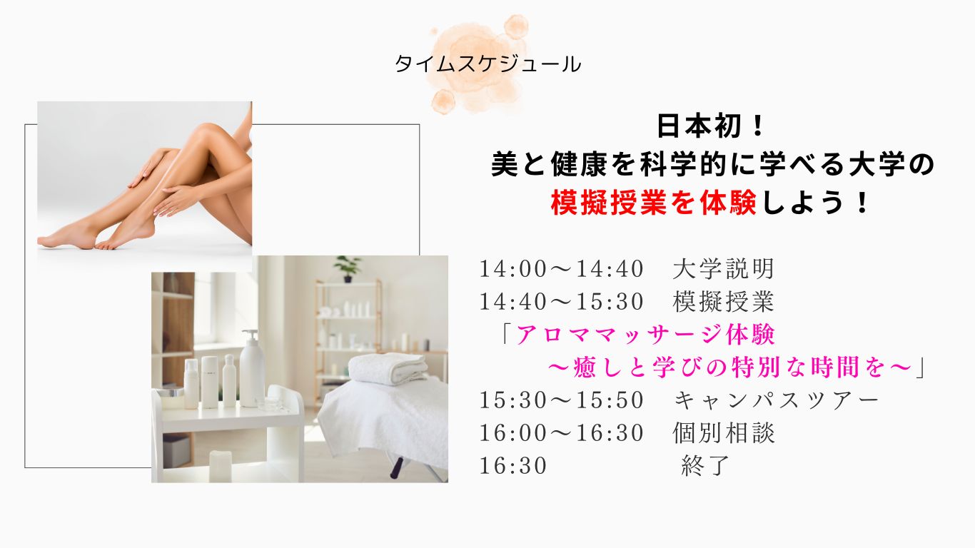 12/21(日)≪エステ体験≫癒しと学びの特別な日~アロママッサージ体験で美容の大学の学びを知ろう~