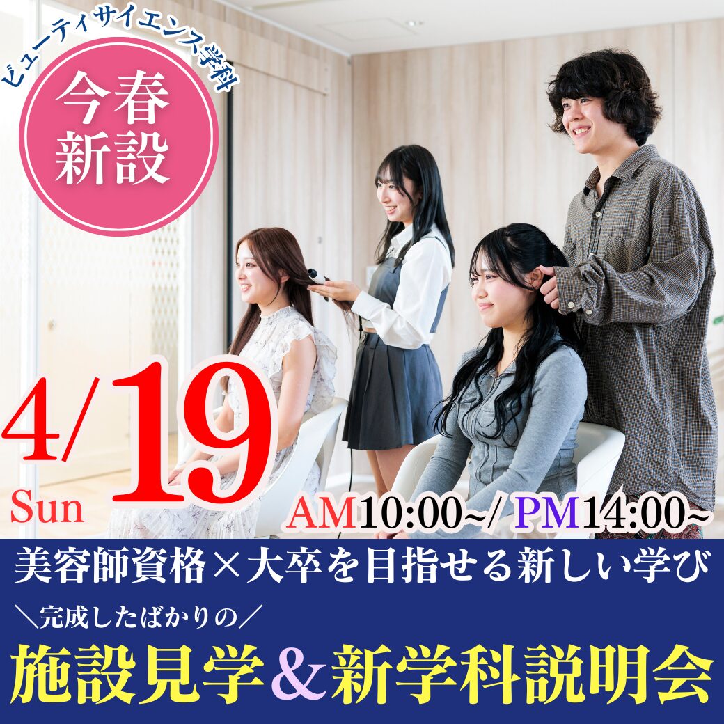 4/19(日)この春新設!美容師資格×大卒を目指せる新しい学び|完成したばかりの施設見学&新学科説明会