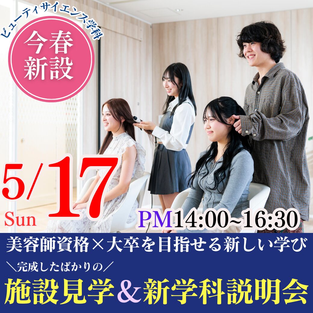 5/17(日)この春新設!美容師資格×大卒を目指せる新しい学び|完成したばかりの施設見学&新学科説明会