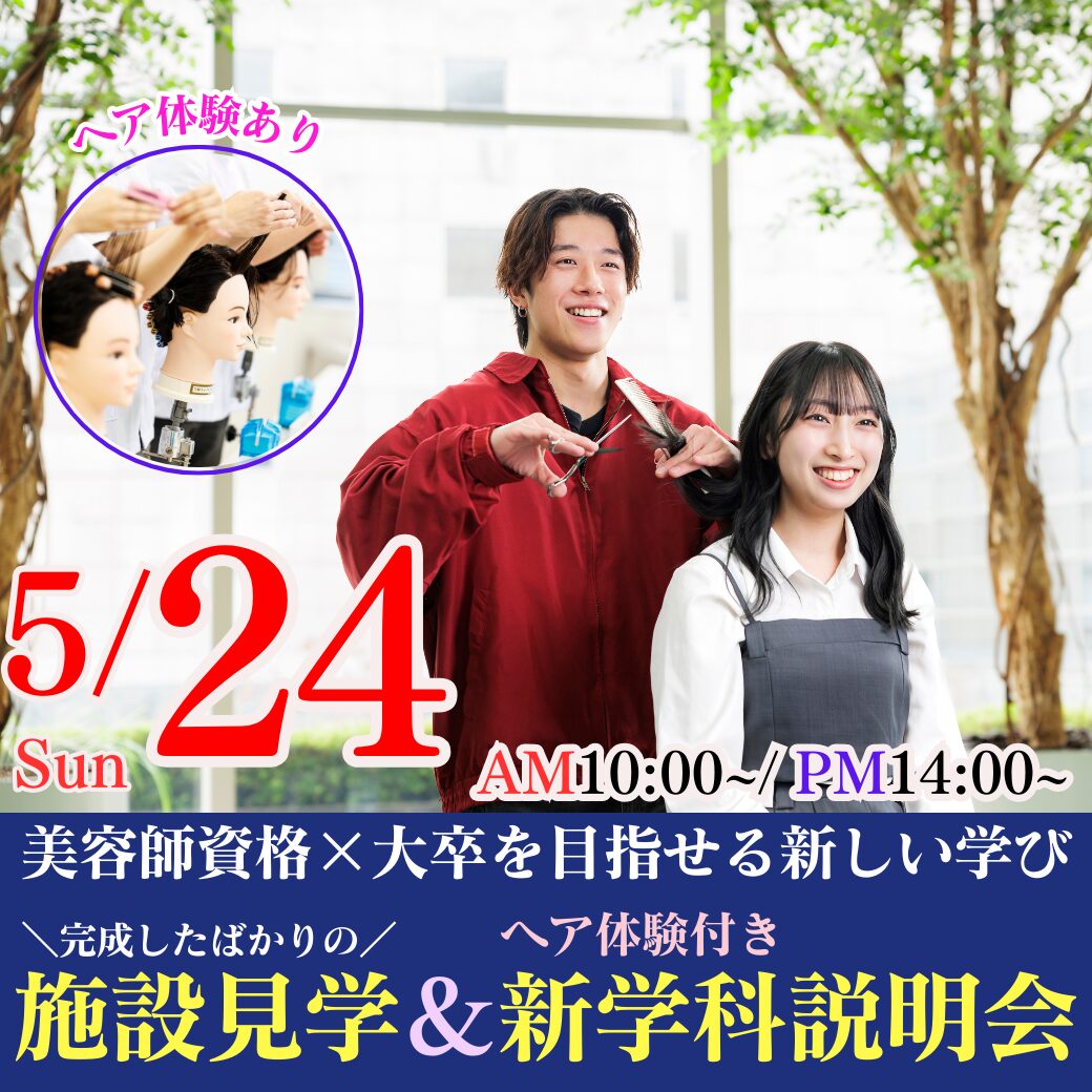5/24(日)この春新設!美容師資格×大卒を目指せる新しい学び|完成したばかりの施設見学&ヘア体験付き学科説明会