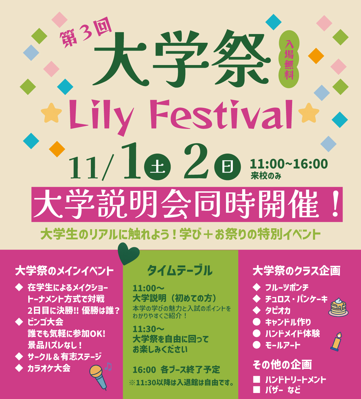 11月1日(土)、11月2日(日)は本学の第3回大学祭です。
