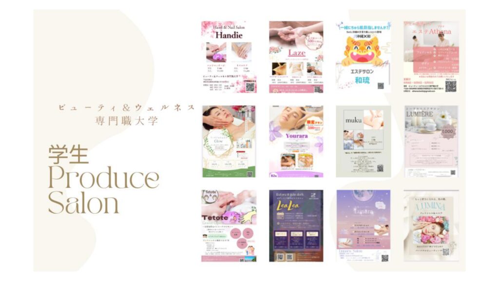 学生たちはこれまでに学んできたエステティック・メイク・ネイルなどの技術に加え、経営学や経済学の知識を活かし、メニュー企画、チラシ制作、集客、施術、運営までを一貫して担当します。実際にお客様をお迎えすることで、プロフェッショナルとして必要な実践力や責任感を養うことを目的としています。