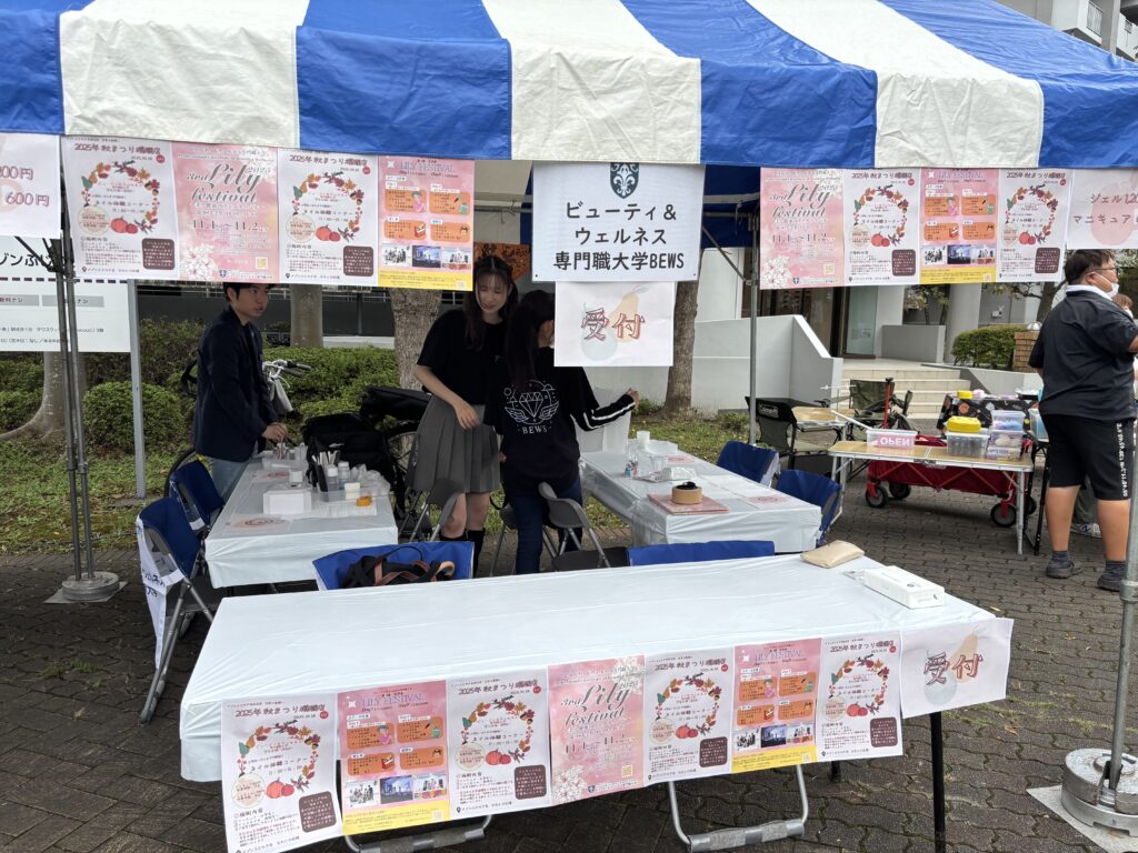 本学の学生広報「BEWS」のメンバーが、メゾンふじのき台自治会が担当する「なわとび広場」にてネイル体験ブースを出店し、地域の方々に美と癒しの時間を提供しました。